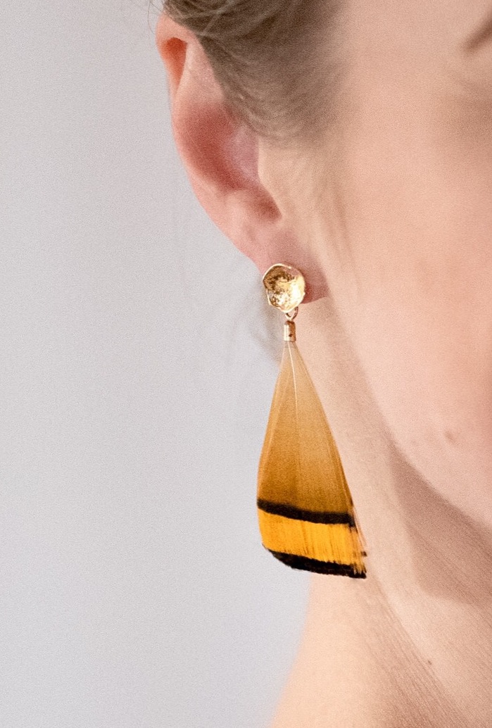 Tolle Feder-Ohrringe aus Fasan-Federn mit hochwertig vergoldetem 925-Silber in Schalenform. Sie haben eine Gesamtlänge von etwa 50mm, sind aber trotzdem bequem zu tragen, da sie überraschend leicht sind und so nicht unnötig stören. Zudem kann man sie in reinem Silber, also ohne Vergoldung, erwerben. Geliefert werden sie in einem hochwertigen Geschenketui.