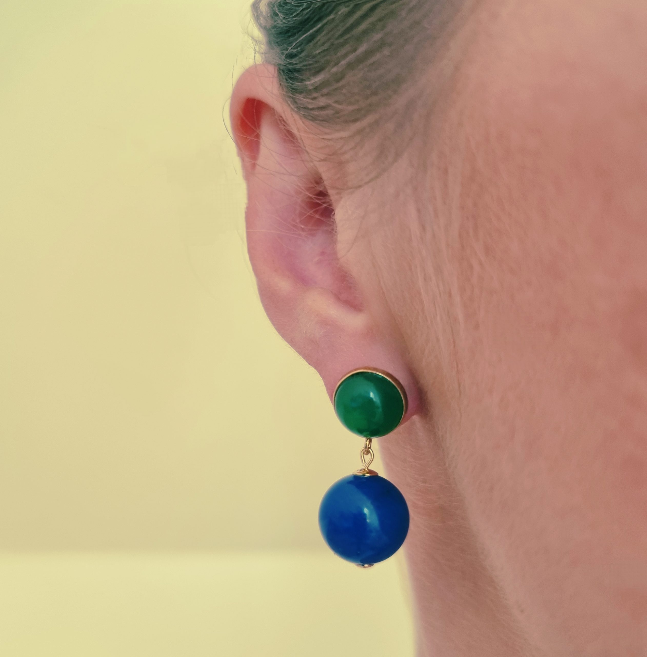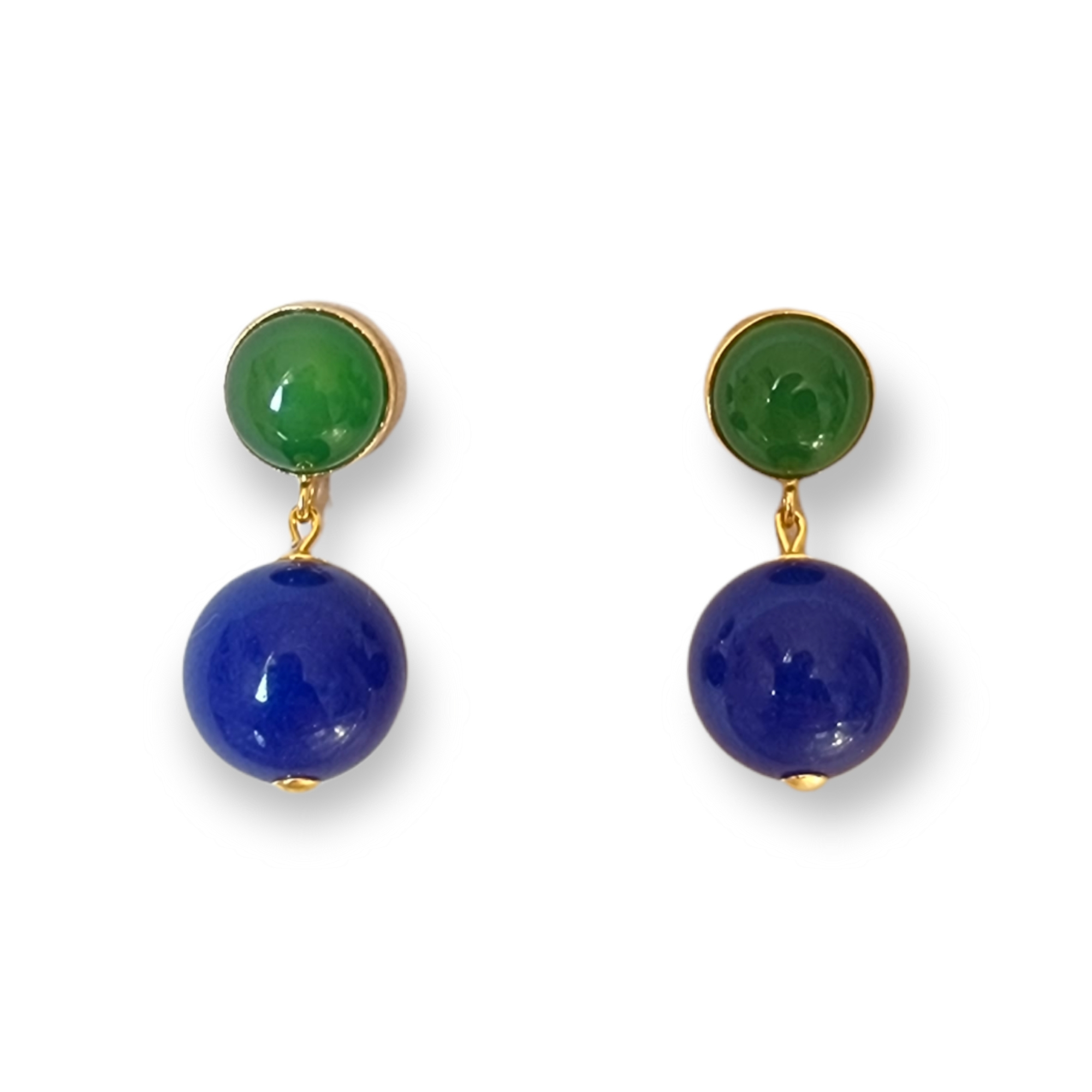 Die Ohrringe “Charlotte” sind tolle Schmuckstücke aus hochwertig vergoldetem 925-Silber mit jeweils Steckern aus grüner Jade und blauen Jade-Kugeln. Mit einer Gesamtlänge von ca 30mm sind sie bequem zu tragen und stören nicht unnötig. Außerdem gibt es sie in reinem Silber oder aber auch als Clips. Zudem kommen Sie mit einem hochwertigen Geschenketui zu Ihnen nach Hause.