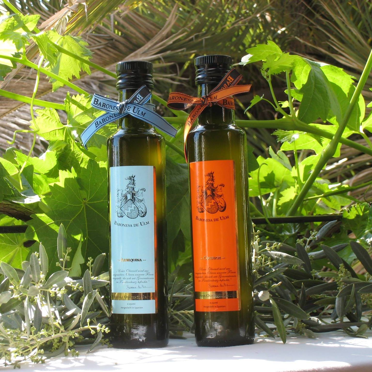 Baronesa de Ulm bietet zwei Olivenöle an, welche aus den Olivensorten Arbequina und Picual gewonnen werden. Diese beiden Olivensorten werden in der Provinz Jaén, im Herzen von Andalusien, traditionell und mit besonders umweltschonenden Methoden angebaut, da sie dort die optimalen Bedingungen zum Wachsen und Gedeihen haben.