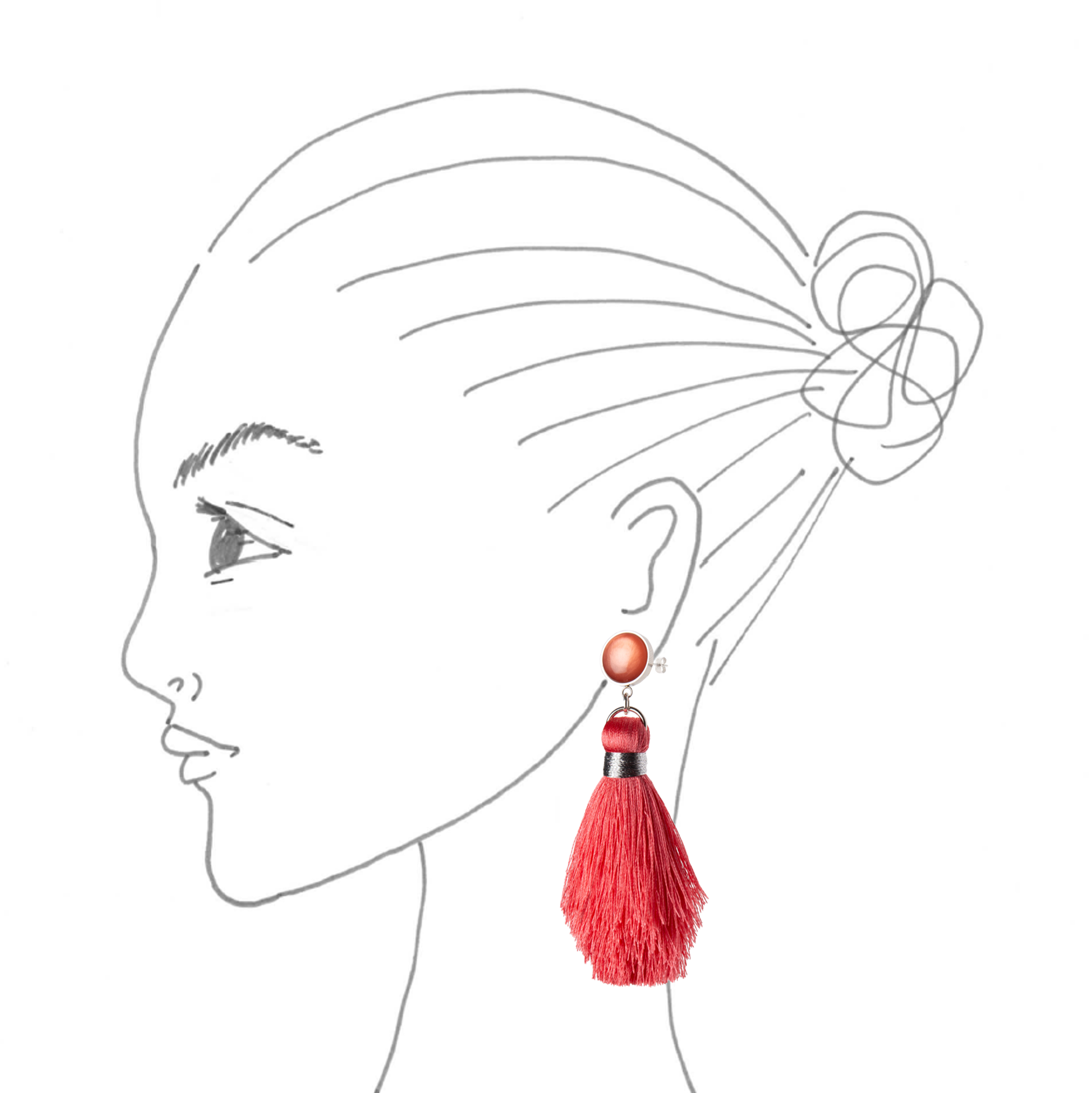 Ohrring mit Cabochon-Stecker und korallfarbener Quaste
