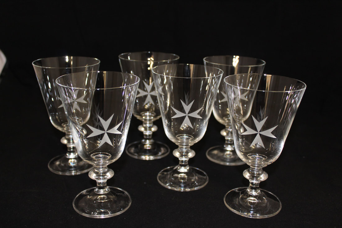 Hier im Bild sehen Sie z.B. ein Gläserset mit dem Kreuz der Johanniter bzw. Malteser. Selbstverständlich können Sie auch Ihr Wappen, ein Logo, Initialen etc. auf die Gläser sandstrahlen lassen.